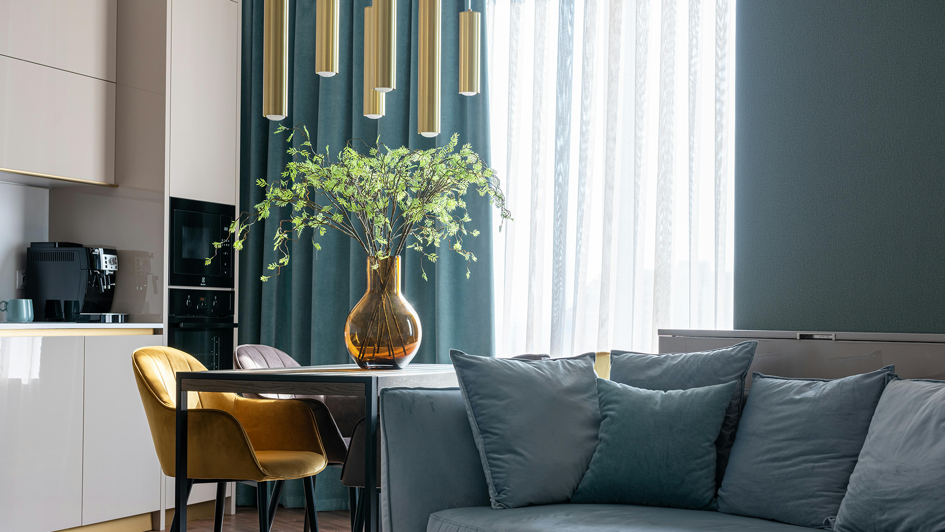 Plants not only add a pop of colour and complement your room’s aesthetic and style, but they also eliminate toxins and add oxygen to your home. Their presence boosts mood and increases productivity, focus and creativity. If you don’t have a green thumb, consider adding natural textures like woodwork, woven furniture or soft natural fabrics to create a soothing atmosphere.