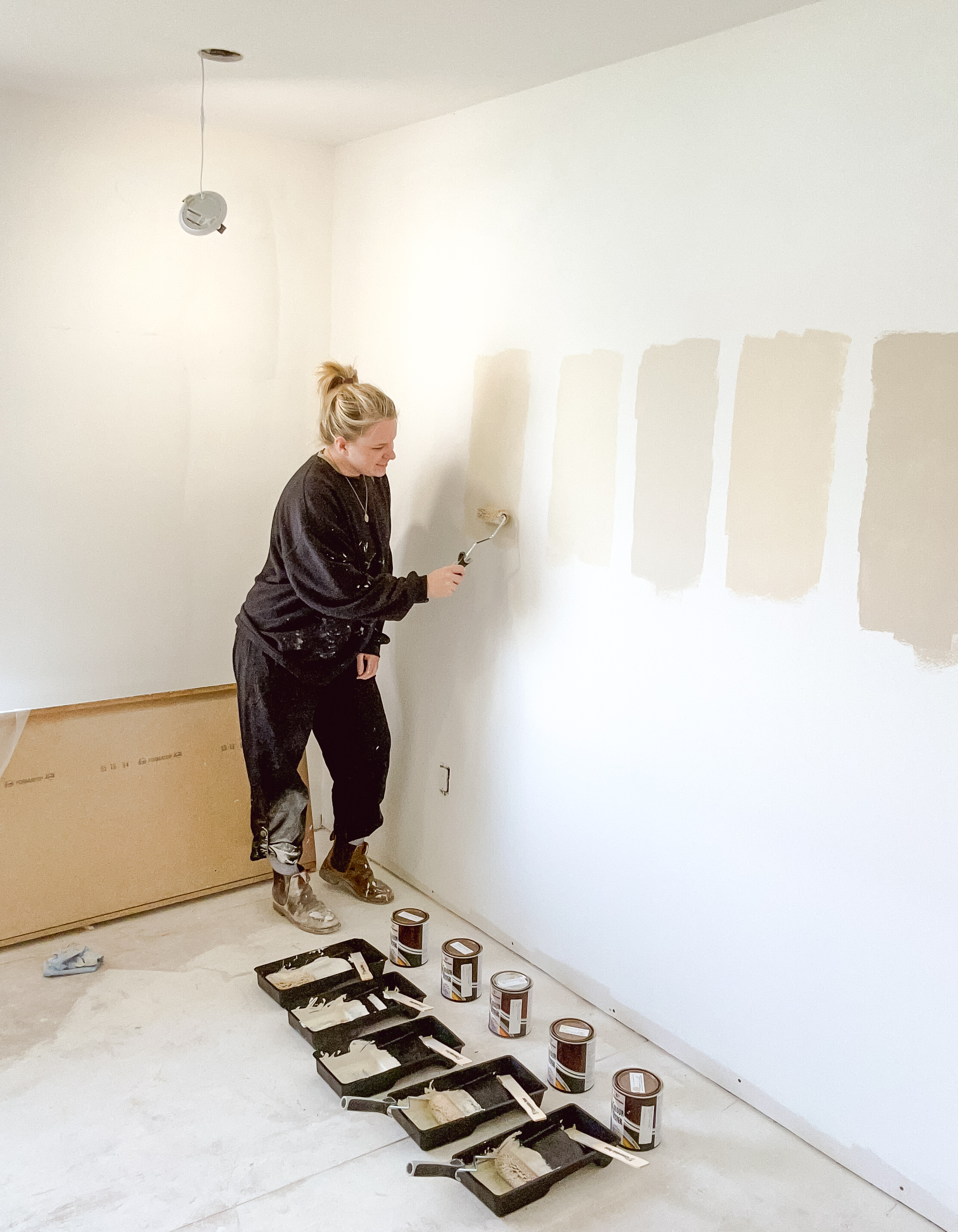 Holly emphasized how critical it was to sample each colour in a few different areas before making her final call. “The same shade looked so much different on the wall than in the can. And it looked different again once it was dry. The bright white of the drywall skewed my perception of the colour, so I painted an entire section to get a better understanding of how the colour was going to look.” She painted large sample areas across her home—on different walls, in different lighting, at different times of day.